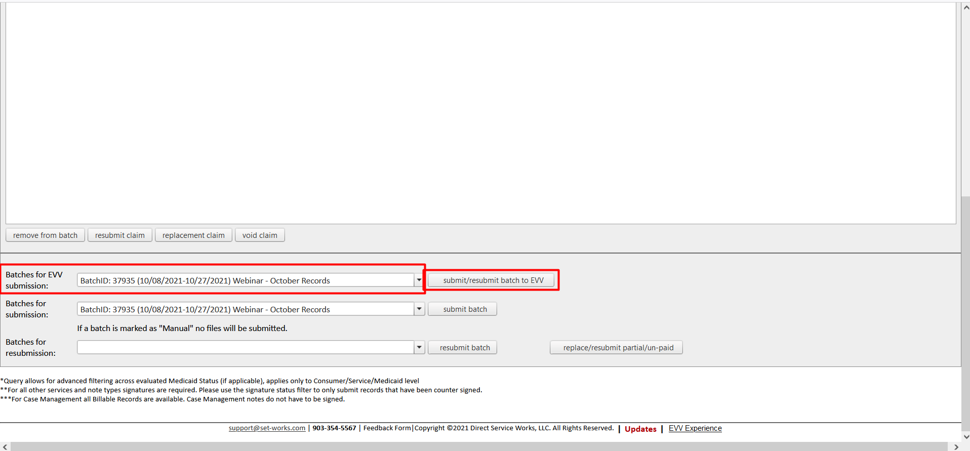 NOTE: The Manage Batches & Submit Billing feature works similarly for electronic billing submissions and EVV submissions. It is recommended you explore eBilling articles or webinars on the Knowledge Base to learn more about the Manage Batches & Submit Billing feature to help with functionality understanding for EVV submission.